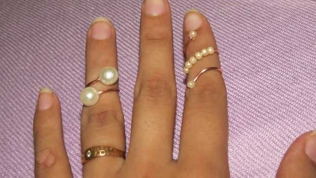 Tercer anillo que hice era el exacto mismo primer anillo con perlitas en los extremos.