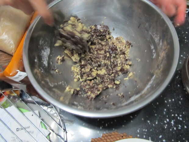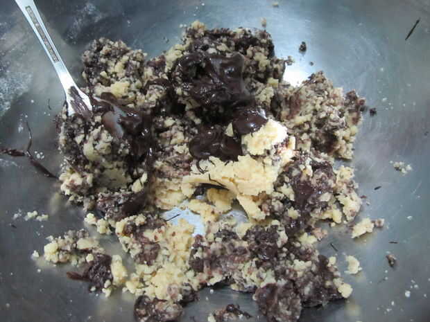 5. Agregar almendra y chocolate derretido y amasan en una pasta.
