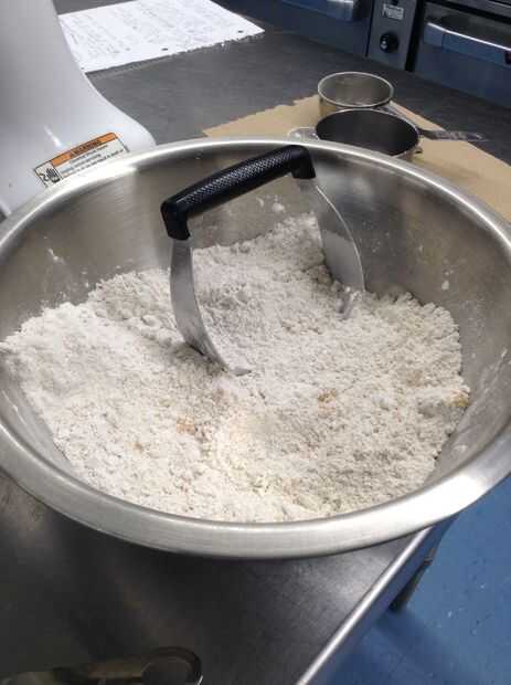 Precalienta el horno a 375 grados. Batir en 1 taza de azúcar morena, 2 tazas y 2 cucharadas de harina, 1/2 cucharadita de bicarbonato de sodio y 1/2 cucharadita de sal en un recipiente de tamaño mediano.
