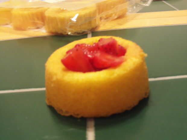 Poner las fresas en el spongecake y espolvorear azúcar por encima. Esto es donde todo el mundo sabe lo malo es su diente dulce. Quieres una pizca, o el tazón de fuente entero. A continuación, poner encima una buena ración de látigo fresco. Ahora, la diversión parte.