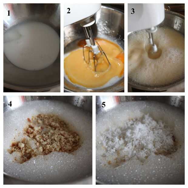 Batir bien las yemas de huevo, leche, azúcar junto hasta que el azúcar se disuelva.