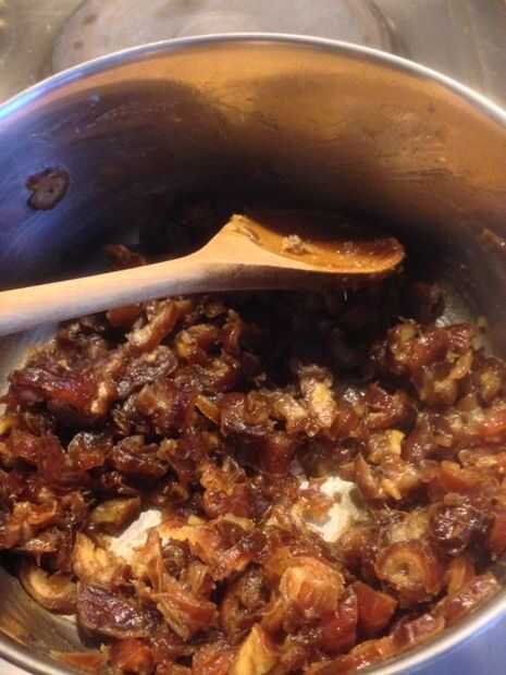Picar las fechas en pedazos minúsculos. Añadir 100 ml de agua y cocine a fuego lento hasta que esté un poco caldoso. En este punto y sultana /raisins mezclar muy bien. Dentro de un minuto después de tomar el fire.add de jugo de cal de la mezcla de la mezcla y dejar enfriar.