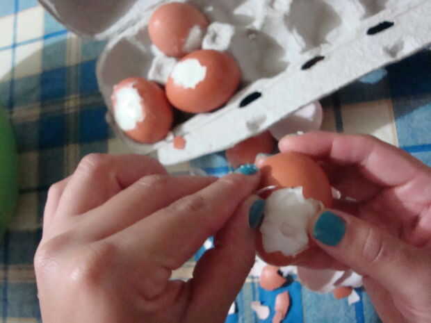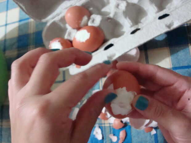 -Quitar las cáscaras de huevos como tarda para huevos; )
