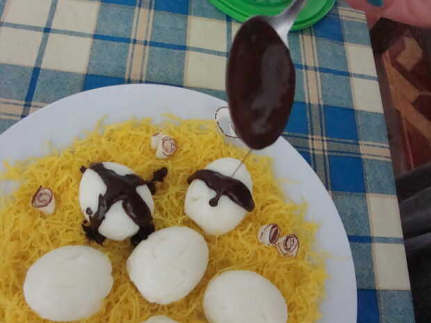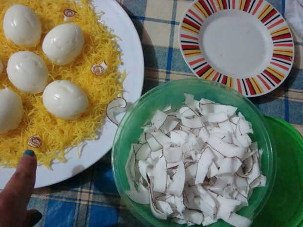 he utilizado esta técnica durante muchos años y siempre mostrando otros... hace uso de huevos duros en recetas mucho más fácil, que el proceso de peeling generalmente de amor. Utilizo esta necesidad había picado huevos duros cocidos, como para ensala