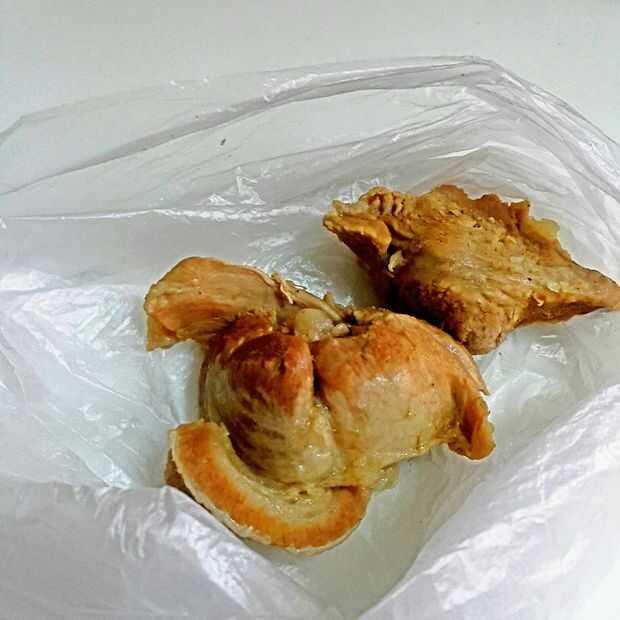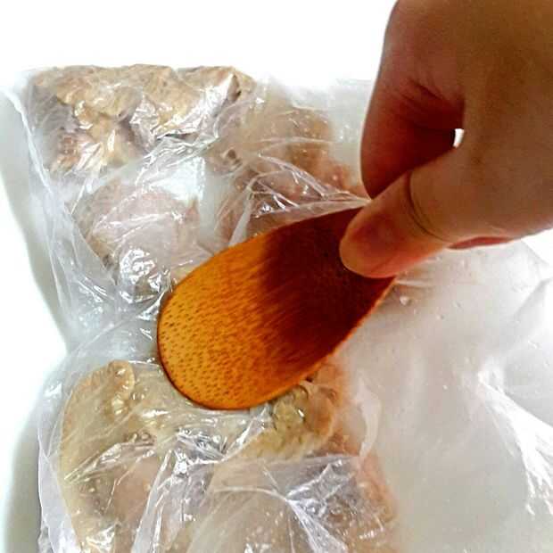 Coloque la carne enfriada dentro de una bolsa de plástico grande y prensa plana mediante rodillo o espátula.