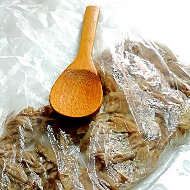 Delicias por la máquina de pan: seda de cerdo (cerdo destrozado secado) (4 / 9 paso)