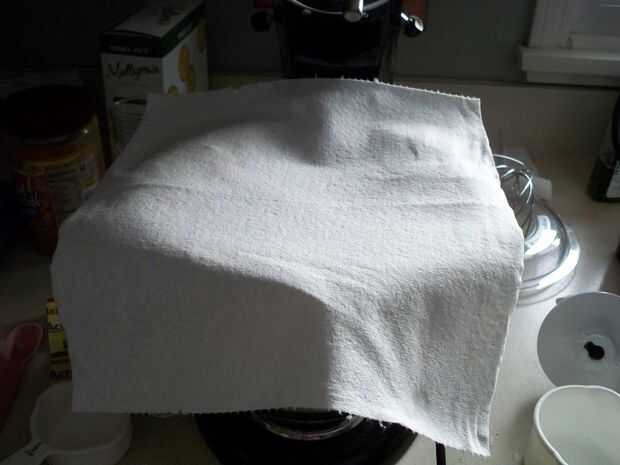 Después de la esponja, quiere dejarlo sentarse y descansar durante 30-45 minutos, o hasta que haya doblado en tamaño. Cuando lo dejas subir, debe cubrir el recipiente con papel toalla. Cuanto más caliente la habitación es, cuanto más rápido la esponja y masa aumentará.