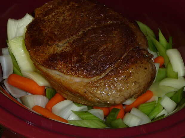 Estofado fácil olla a presiónAquí es una receta para una sabrosa carne asada que se derrite en tu boca. La olla a presión produce jugoso, sabroso y muy tierno estofado.Ingredientes:1 ojo de buey redondo asado o asado de chuck, alrededor de 2 a 3 libr
