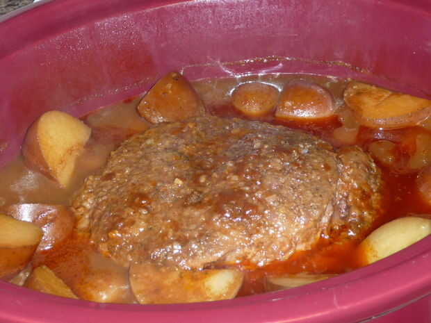Estofado fácil olla a presiónAquí es una receta para una sabrosa carne asada que se derrite en tu boca. La olla a presión produce jugoso, sabroso y muy tierno estofado.Ingredientes:1 ojo de buey redondo asado o asado de chuck, alrededor de 2 a 3 libr