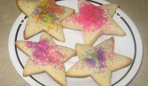 10. Espolvorear el azúcar coloreado en las galletas antes de mantener en el horno.