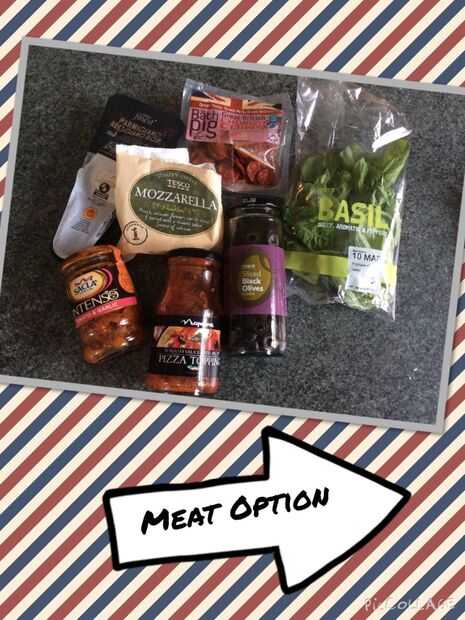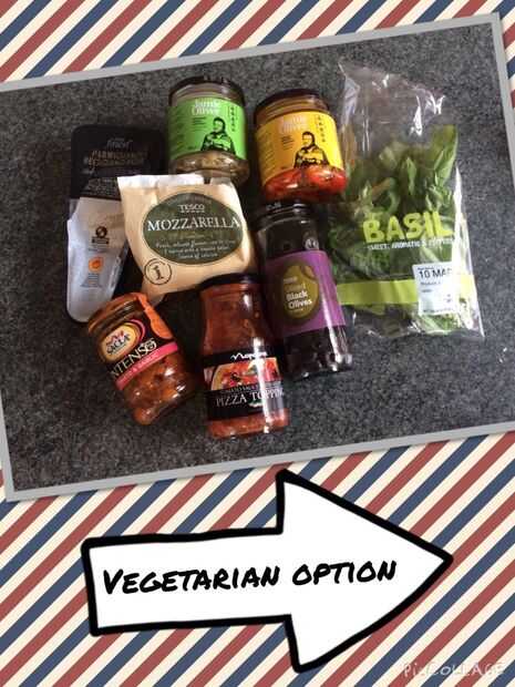 Para la opción de veggie - agregarlo que gustes - usé antipasti - pimientos asados y alcachofas en aceite.