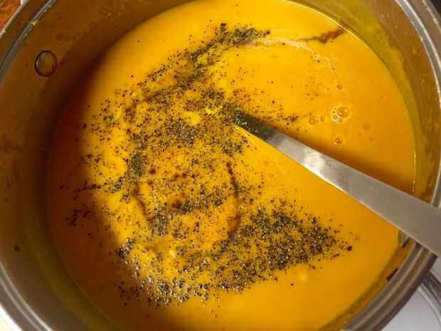 Al principio la sopa será algo gruesa, pero una vez que tengas un líquido homogéneo, es el momento de verter en la leche de coco, un poco de salsa de soja, el zumo del limón. Mezclar bien y también empezar a agregar condimento a tu gusto. Todo va a salir a una sopa suave y cremosa. Si eres muy exigente, puede verter la sopa por un tamiz.