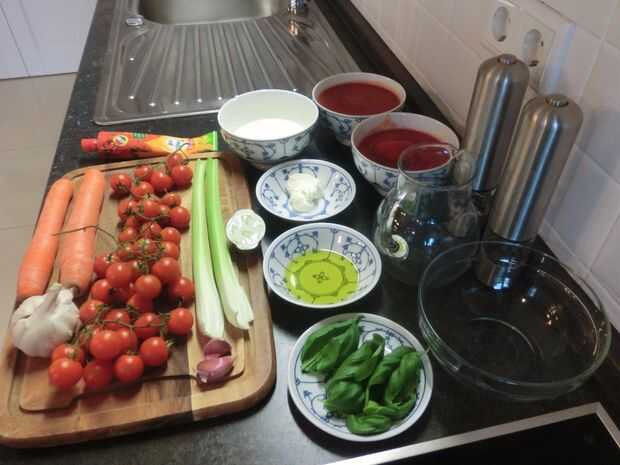usted va a necesitar los siguientes ingredientespara la sopatomate (cualquier tipo y cualquier cantidad)1 pimiento de su elección1 cebolla preferentemente mediano a grande1 cucharada sopera aceite de oliva (aceite de coco funciona solo así)1 cucharad