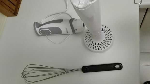 -Instrumento para hacer purés. O puede usar un colador para dar el queso de una textura más cremosa.