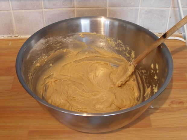 Añadir la harina y especias a la mantequilla crema poco a poco, doblando en la mantequilla, azúcar y huevos. Cuando se pone demasiado duro para trabajar, añadir el zumo de naranja, mezclar luego continuar agregando el resto de la harina.