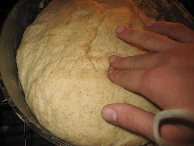 (Usted puede probar si la masa se haya doblado por introduciendo dos dedos en la parte superior de la masa. Si sigue el sangrado los dedos hacen primavera no volver y en su lugar, se ha duplicado.)