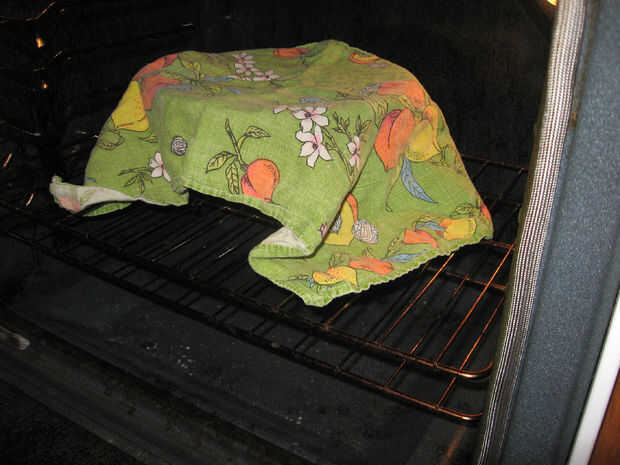 (Caliente, corrientes de aire ubicación es dentro del horno frío, pero si no tienes uno para repuesto tuck el tazón de fuente en una esquina lejos del tráfico y las brisas).