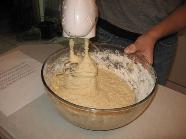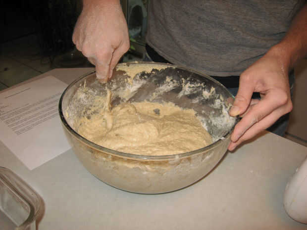 (Usted notará que no hay instrucciones estrictas respecto a cuánta harina agregar, exactamente, en este paso. Eso no es un error; panificación se realiza en gran parte por el instinto de la vista y los intestinos, en lugar de siguiendo un conjunto preciso de instrucciones a la t, como en un postre horneado receta. Este paso se realiza cuando la masa tira, no cuando has añadido una determinada cantidad de harina. Debe, si usted está contando, terminan siendo 3 1/2 a 4 tazas añadidos en este paso, pero es más importante que la masa apariencia como se debe que cualquier cosa.)