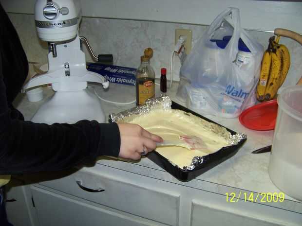 cuando hiela es pobres suave encima de la masa y extenderlo alrededor uniformemente con una espátula de