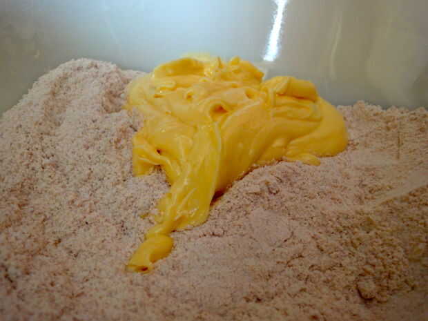 Primero, lanzar tus galletas en un procesador de alimentos y les puré hasta que se conviertan en una consistencia de harina. Luego se mezclan todos los ingredientes secos juntos en un tazón y todos sus ingredientes húmedos en otro recipiente.  Por último, combinar la mezcla mojada con la mezcla seca.