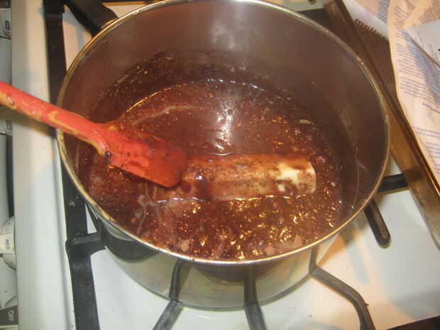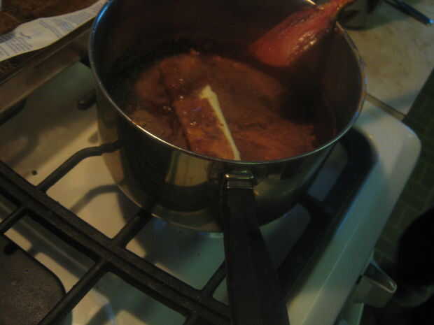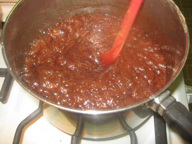 ahora con su mantequilla, cacao, leche y azúcar, en cocción a fuego medio hasta que la mantequilla se derrita. Cuando se funda, ajustar el temporizador y dejar hervir durante al menos 2 minutos, después la mantequilla totalmente derretida.