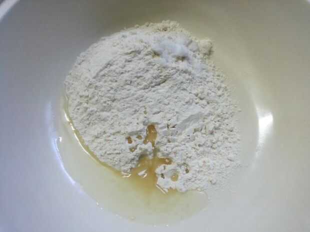 Mientras tanto, toma un recipiente y ad 1 taza de todo uso harina, 1 cucharada de aceite y 1 cucharadita de sal. Mezclar muy bien.