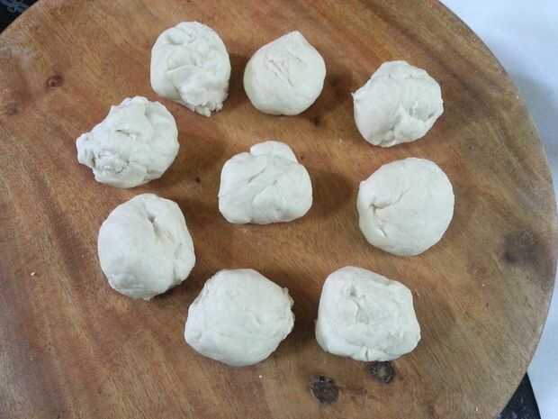 Dividir la masa en 9-10 pequeñas porciones y cada porción la forma en una bola,