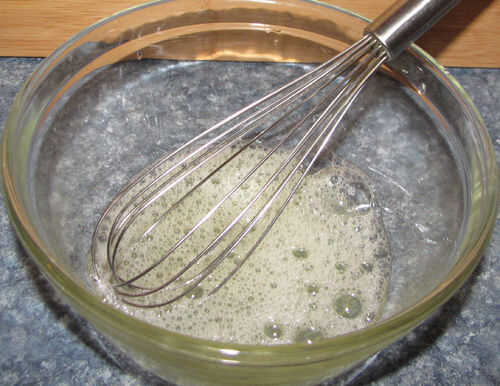En un recipiente aparte, crack 2 huevos, recordar reservar sólo los blancos. Añadir una cuchara de agua y bate hasta que estén ligeramente espumosas.