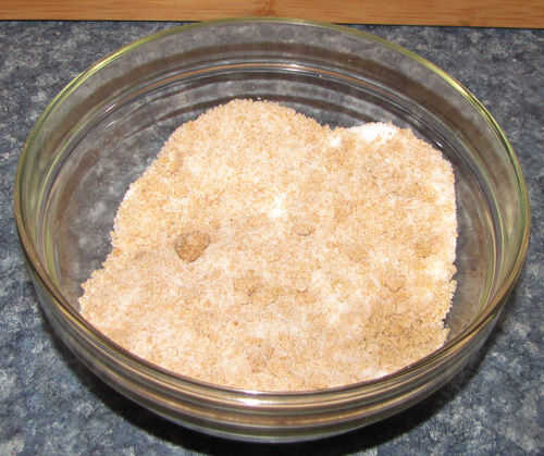 Combine el azúcar, la sal y la canela en un tazón de tamaño mediano y batir hasta que se mezcle bien.