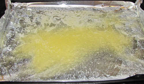 Tomar la mantequilla derretida y verterlo simplemente sobre una bandeja forrada de papel de aluminio. Asegúrese de desplazarse para cubrir todas las áreas de la bandeja.