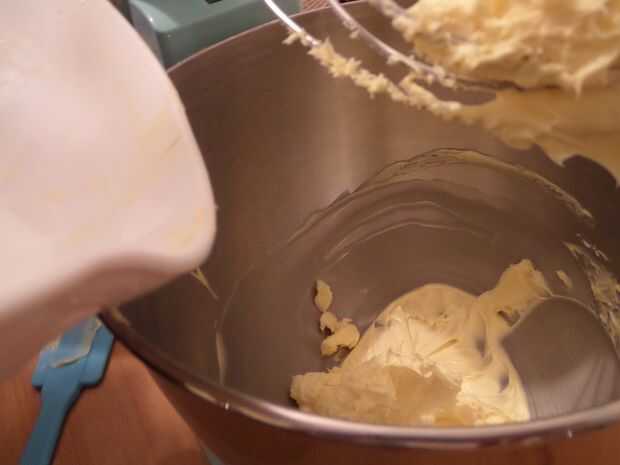 Ahora que su mantequilla en la batidora o la taza y batir hasta que quede muy claro. Gradualmente añada el azúcar, luego batir bien durante unos 4 minutos o hasta que esté ligero y esponjoso!!!!!!