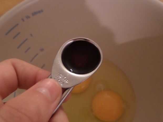 Crack los huevos en un Bowl agregar el extracto de vainilla y batir hasta mezclar totalmente, Añadir entonces poco a poco a se mezcla. Asegúrese de mantener raspado de las maduras de los lados del tazón de fuente por lo que se mezcla correctamente.