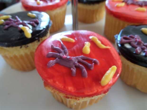 tortas de la taza son postres. Son dulces y muy lindo, decorado con glaseado. Es aquí mi único vampiro torta de la taza de zanahoria icing.amazing. Parece reall guinda de la torta!!Paso 1: ingredientes For cup cake1 taza de harina todo usogranulado d