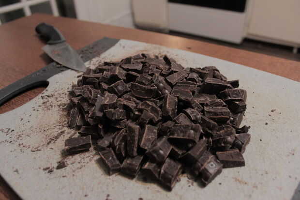 - Romper la primera 250g de chocolate en trozos pequeños.