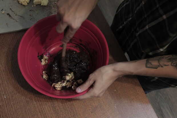 - Con una cuchara, tomar un poco de masa y amasar con la mano para hacer una forma redonda. Realmente puede hacer la forma que usted quiera; Yo personalmente no cambiar la forma demasiado como yo como la forma de estilo rock da.