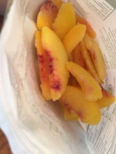 Añadir unas rebanadas de durazno congelado. Compré éstas ya congelados.