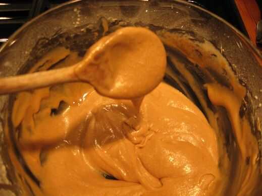 Añadir la leche. La mezcla debe ser sobre la misma consistencia que la masa de la torta. Si no es así, añadir unas gotas más de leche.