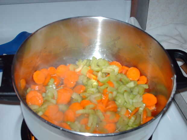 2. acitronar zanahorias y apio, asegurándose de que no cojan color.