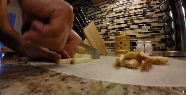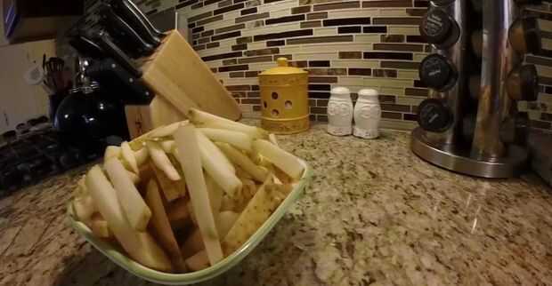 • No hay necesidad de pelar, solo cortar en forma de papas fritas