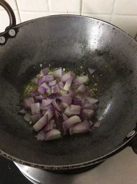 Poner en la sartén y cocinar. Usted puede notar laterI cambiado las cacerolas, como encontré que mi molde era un poco demasiado pequeño para la cantidad de verduras que había cortado!