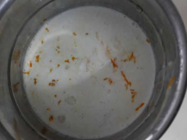 2. Vierta la leche entera, leche condensada, crema, huevos, yema de huevo, jugo de naranja, cáscara de naranja, extracto de vainilla y fécula de maíz en una licuadora.