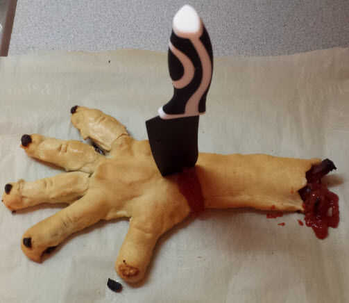 Esta receta es ideal para Halloween, tiene todos los elementos que necesita, una extremidad cercenada, zombies y sangre.