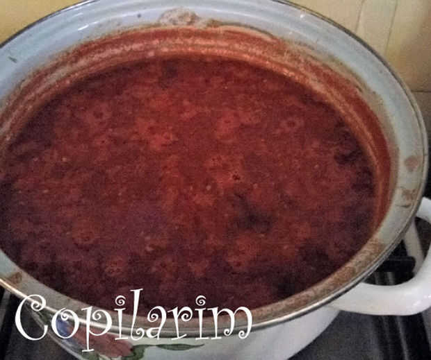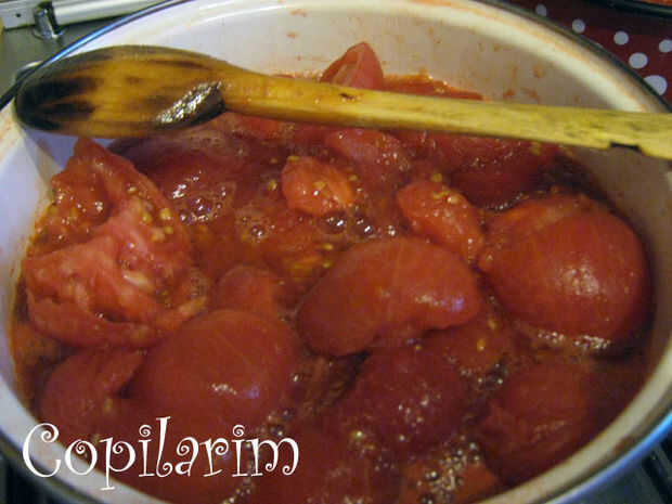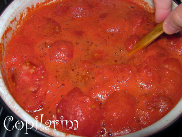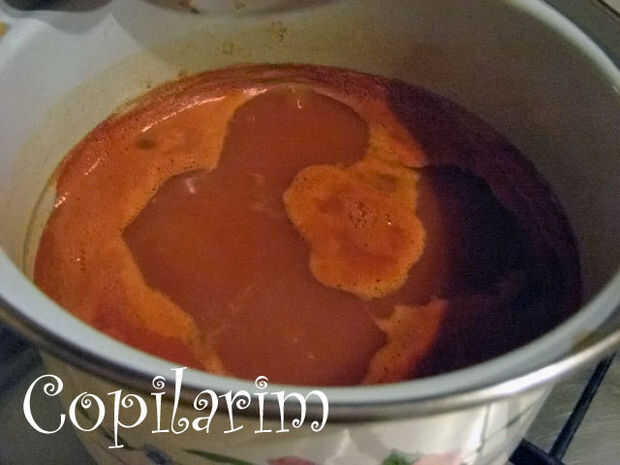 El jugo no es tan espeso y es perfecto para sus sopas. Los "tomates en la botella" van a hervir hasta que el aspecto más o menos como un jugo con piezas de tomate en él. Nuestros estaban listos en menos de 1h...