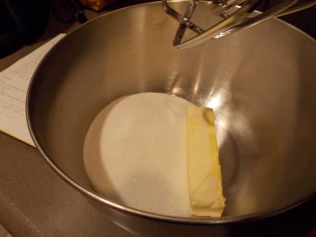 Crema la manteca y el azúcar junto hasta que la luz y mullido.