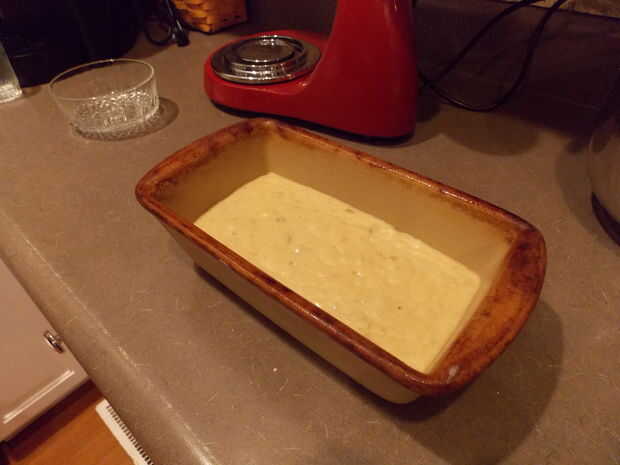 Distribuir uniformemente la mezcla en dos moldes de pan. Si sólo tienes un molde, vierta la mitad y guardar el resto para hornear más tarde. Coloque los recipientes en el horno precalentado y hornear durante 40-50 minutos. Cuando las copas se convierten en marrón, usted puede comprobar para ver si terminan metiendo un cuchillo fino o un palillo en el centro de los panes de la hornada. Si sale limpio, está hecho el pan!