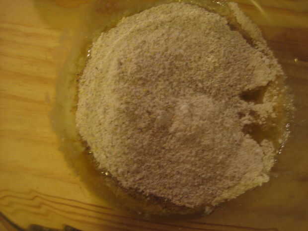 3. La descarga de harina de maíz, de espelta, bicarbonato de sodio, polvo de hornear y la sal