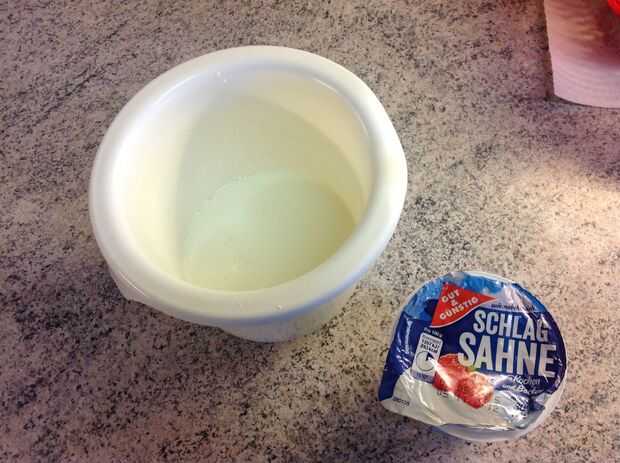 Ahora coge tu crema batida y un paquete de azúcar de vainilla. Mezclar la nata y añadir el azúcar de vainilla. (Sí, uso el paquete entero!) Mezclar hasta que se ha convertido en agradable y espesa.