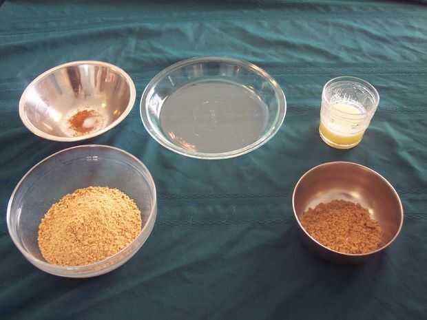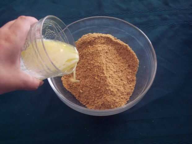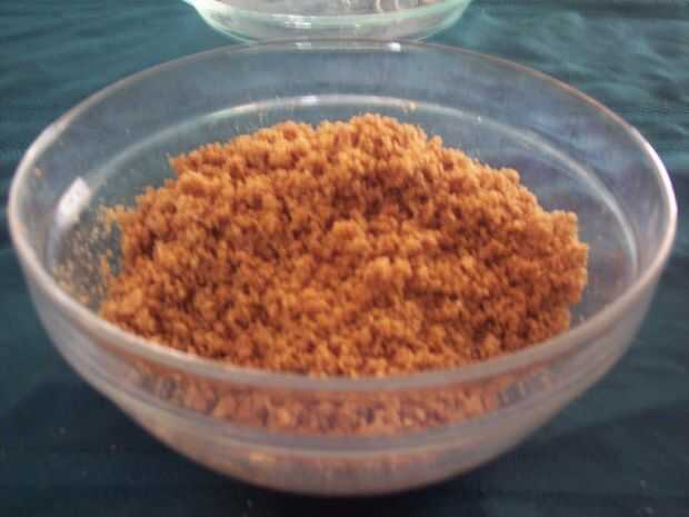 2. en un tazón grande combine las migas de galleta, azúcar morena, sal y canela. Mezclar ligeramente con los dedos. Añadir la mantequilla derretida y mezclar bien, frotando para ayudar a humedecer uniformemente las migajas.