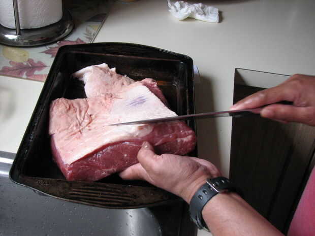 Eliminar el exceso de grasa. Pastrami, a diferencia de la carne tiene poca grasa.