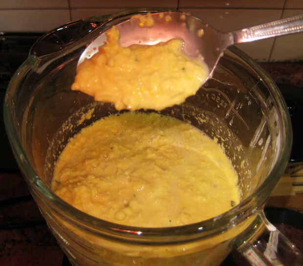 Mezcla bien hasta que tiene una textura líquida. Como un goteo tazón de avena. El cuadro le ayudará a darle una idea de la consistencia.